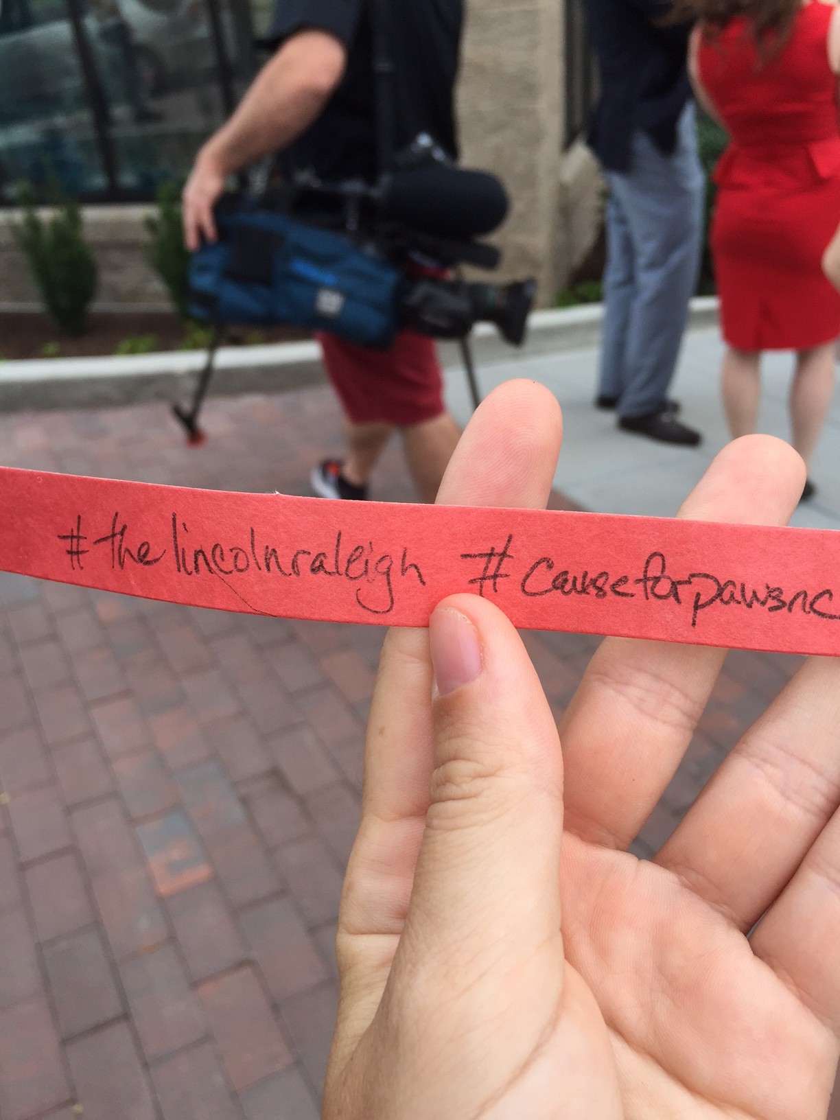 Attendees gather for "ribbon-chewing" by Cause for Paws rescue dog at The Lincoln Apartments