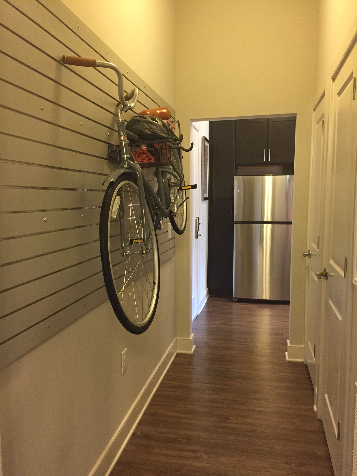 In-unit bike storage walk at The Lincoln Apartments