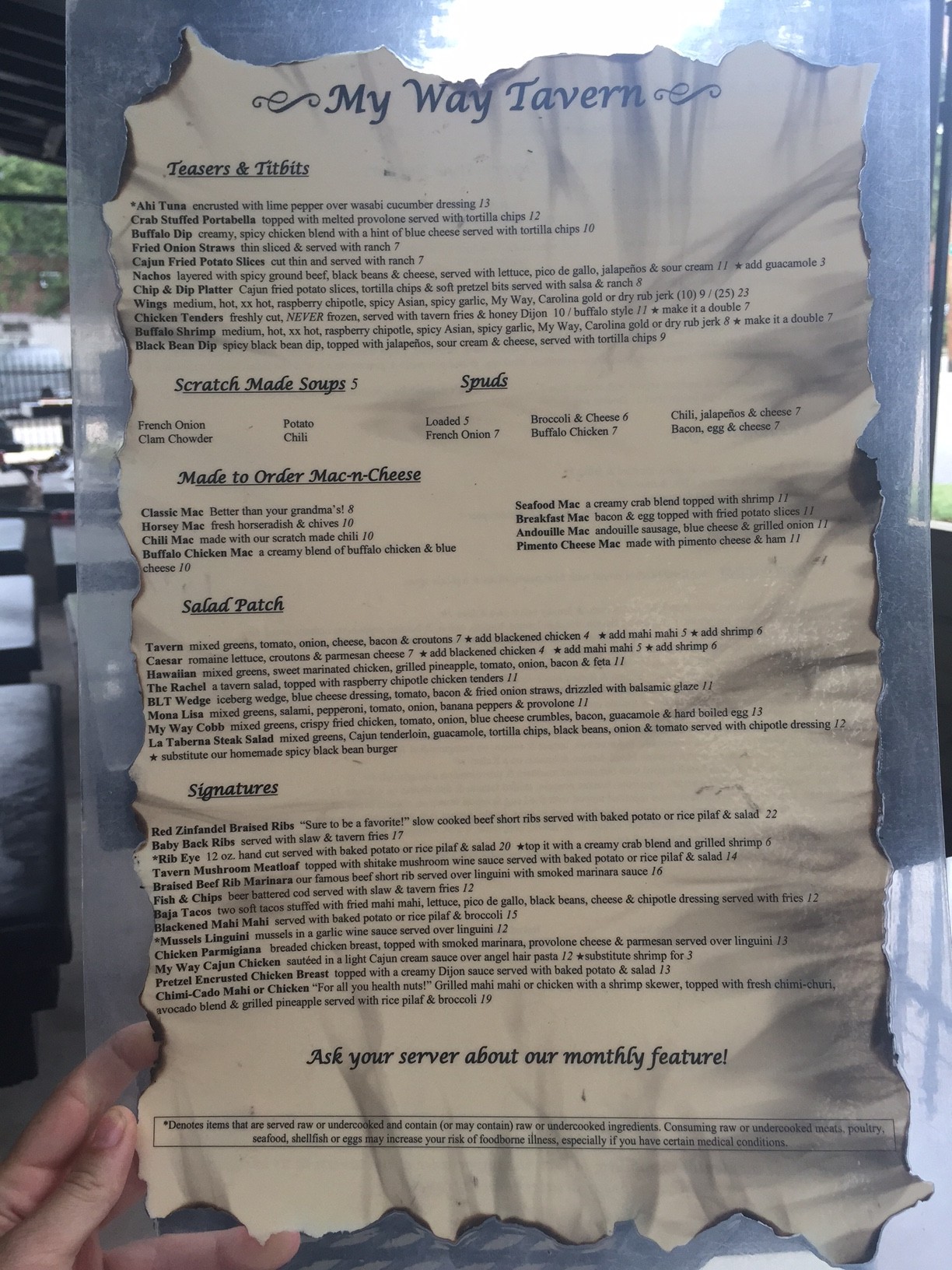 My Way Tavern menu