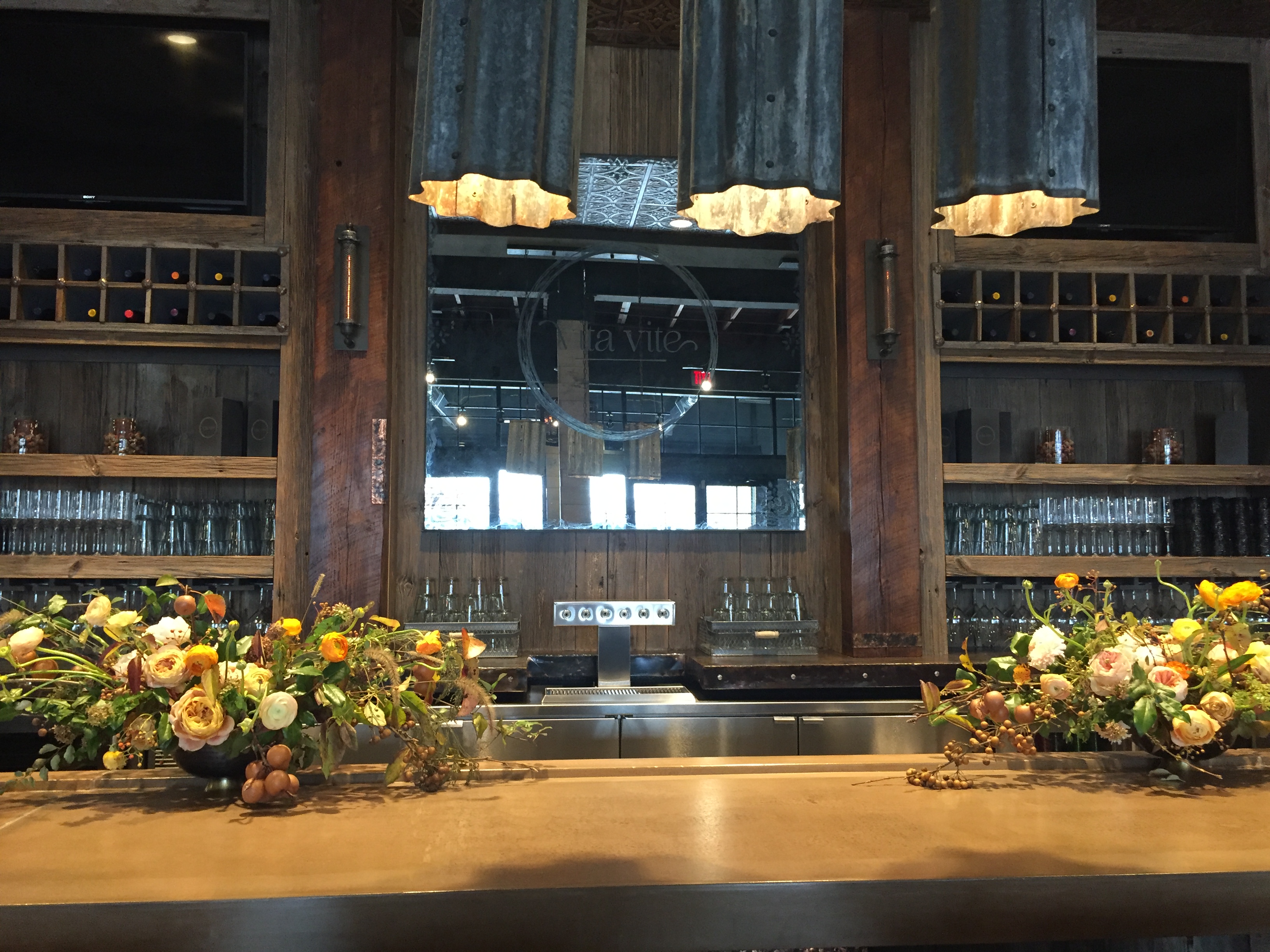 Reclaimed and industrial bar at Vita Vite art gallery + wine bar in Downtown Raleigh